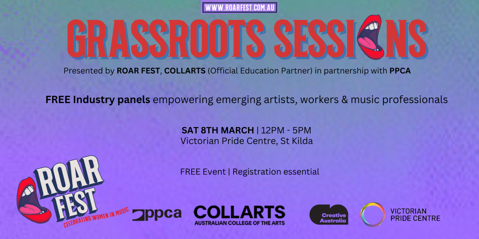 Held at the Victorian Pride Centre, in St Kilda, the Grassroots Sessions feature a series of interactive panel discussions and where industry experts from PPCA, ARIA, APRA AMCOS, AIR, Support Act, Collarts & more will explore key topics such as diversity, funding, career development and navigting challenges, empowering attendees to achieve impact and success in the music industry.